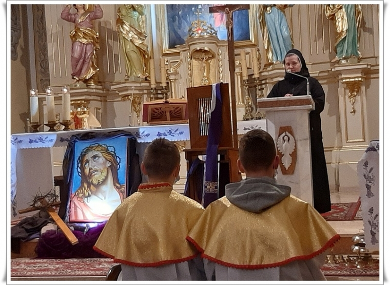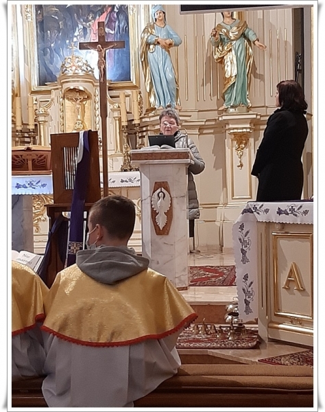 Członkowie MGSJ wraz z animatorką s.M. Grzegorzą Bukita CSSJ uczestniczyli w Eucharystii sprawowanej przez ks. Proboszcza Krzysztofa Tworzydło oraz ks. Wikariusza Piotra Gwoździa. Najświętszą Ofiarę poprzedziła Droga krzyżowa czytana życiem Jezusa i Jego Rodziców - Józefa i Maryi.