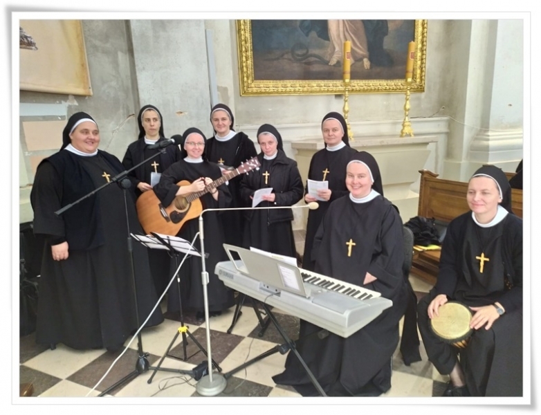 Uroczystej Eucharystii o godz. 12.00 przewodniczył Ksiądz Andrzej Kaleta - biskup pomocniczy diecezji kieleckiej. Mszę koncelebrowali kapłani zakonni różnych zgromadzeń. Ksiądz biskup podczas homilii podkreślił, że jako osoby życia zakonnego, świadomi swojego wybrania i obdarowania, mamy przypominać sobie potrzebę ciągłego ponawiania faktu ofiarowania siebie na służbę Bogu i ludziom. To ofiarowanie ma się dokonywać w warunkach naszej zwykłej codzienności. Po zakończonej Eucharystii, na wirydarzu klasztornym zgromadzeni zakonni pątnicy mogli posilić się i wspólnie spędzić czas rekreacji. Ostatnim punktem spotkania była adoracja Najświętszego Sakramentu i modlitwa Koronką do Bożego Miłosierdzia którą przygotowała Prowincja Tarnowska. Po zakończonej adoracji diakon pobłogosławił wszystkich zebranych relikwiami Drzewa Krzyża Świętego.