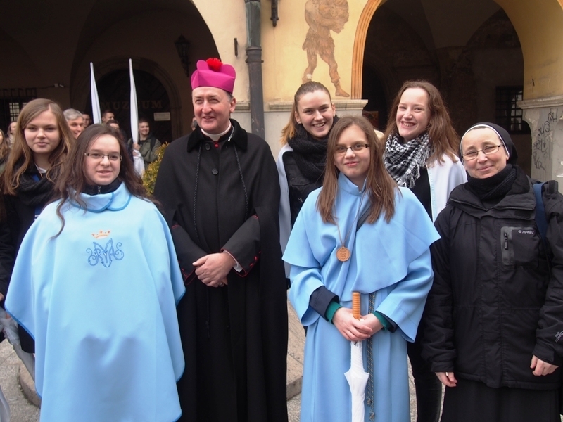 Aktywnie w przeżywanie tego dnia włączyły sie Przewodniczki Dziewczęcej Służby Maryjnej z Diecezji pod kierunkiem s. M. Marciny. Dziewsczęta niosły relikwie Św. Jana Pawła II, bł. Karoliny Kózki oraz bł. o. Zbigniewa Strzałkowskiego podczas procesji, niosły dary ofiarne podczas Mszy Świętej a na jej zakończenie w imieniu zebranej młodzieży wręczyły Księdzu Biskupowi bukiet kwiatów.