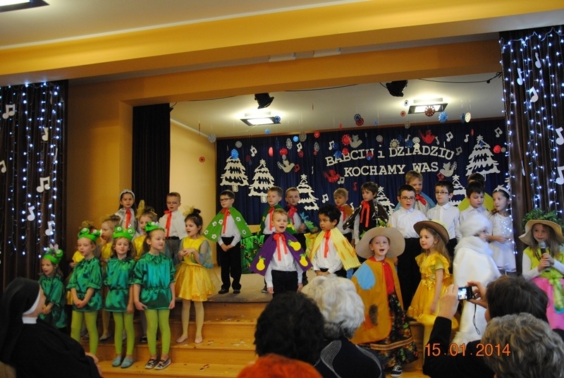 Pierwszego dnia swoje spotkanie z babciami i dziadziami miały dzieci najstarsze – grupa „Promyków Św. Józefa”, która zaprezentowała pokaz mody dwunastu miesięcy. W czwartek grupa „średniaków” – „Kwiatuszki Maryi” wystąpiła i zatańczyła dla swoich najbliższych, składając im „literkowe” życzenia. W piątek najmłodsze dzieci –„Aniołki” wśród tańca i śpiewu złożyły u stóp babć i dziadziów bajkowe prezenty. Niejeden dziadzio i babcia miał łzy wzruszenia w oczach, gdy widział swoją pociechę na scenie składającą życzenia. Po każdym przedstawieniu dzieci wręczały własnoręcznie wykonane upominki, a następnie miał miejsce wspólny poczęstunek. Zarówno dzieci, jak i dziadkowie nie chcieli opuszczać sali, pragnąc przedłużyć tę niezwykłą chwilę bycia razem; dla wszystkich te spotkania stały się okazją do zacieśnienia więzi z najbliższymi.