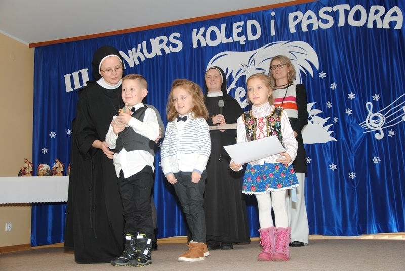 13 stycznia w józefickim przedszkolu w Krośnie odbył się już III Konkurs Kolęd i Pastorałek dla dzieci w wieku przedszkolnym. Propozycja imprezy spotkała się również w tym roku z bardzo dużym zainteresowaniem w lokalnym środowisku, gdyż wzięło w niej udział 10 placówek przedszkolnych z Krosna i okolic, łącznie ponad 61 młodych wykonawców. Całej imprezie towarzyszyły wielkie emocje zarówno dzieci, jak i ich opiekunów. Przedszkolaki miały możliwość zaprezentowania swych umiejętności w 4 kategoriach: 3-4 latki indywidualnie, 3-4 latki zespołowo, 5-6 latki indywidualnie oraz 5-6 latki zespołowo. Powołane przez organizatorów Jury w składzie: mgr Monika Fabisz - nauczyciel wokalu, mgr Iwona Kielar - nauczyciel rytmiki, s. Alfonsa Grybel-józefitka, z prawdziwą przyjemnością słuchało wykonania wielu tradycyjnych kolęd i nowoczesnych pastorałek.