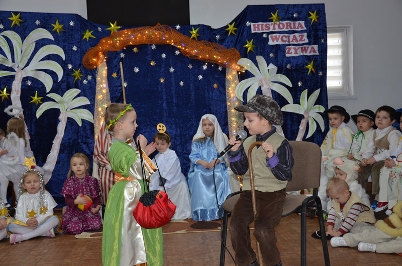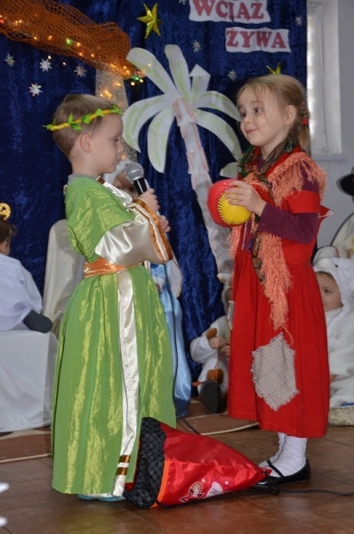 W Jasełkach wzięły udział wszystkie dzieci, które przybrały postacie: Świętej Rodziny, aniołów, pasterzy, gwiazdek, Trzech Króli, tym razem były też baranki, wołek i osiołek oraz wielbłądy. Końcowym akcentem było wspólne spotkanie z okazji Dnia Babci i Dziadka.
