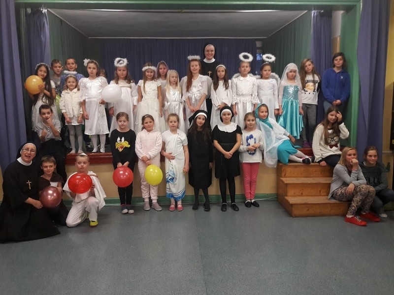 Po zakończonych lekcjach, w jadalni szkolnej odbył się bal świętych dla uczniów klas I – IV. Bal rozpoczął się piosenką „Taki duży, taki mały może świętym być…” a zakończył się konkursem na najpiękniejszy strój świętego