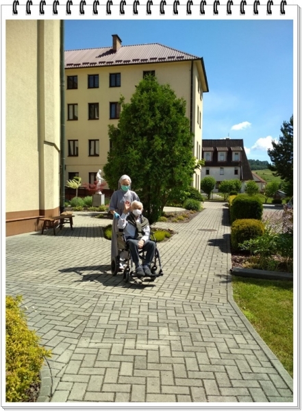 Kiedy zagrożenie już zostało opanowane, można było zacząć powrót do „normalności”. Mieszkańcy DPJ to starsze osoby, jak według siostry poradzili sobie z kolejną zmianą, tym razem na lepsze, ale jednak… maseczki, rękawiczki, to nie była już ta sama rzeczywistość, którą znali sprzed pandemii… byli chętni do współpracy? O tak, maseczki to drobnostka w porównaniu z kilkumiesięczną izolacją! To był piękny moment gdy początkiem lipca zaczęliśmy mieszkańców wyprowadzać na podwórko: świeże powietrze, przestrzeń, piękna przyroda i obok ludzkie twarze – to nic że w maseczkach, możliwość rozmowy, śpiew, gimnastyka i wspólna modlitwa!!! Radość i wdzięczność bijąca z oczu mieszkańców sprawia, że zapomina się o tym co było trudne! W życiu największe szczęście dają relacje: z Bogiem i drugim człowiekiem!