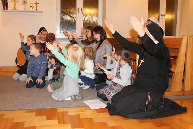 Po wspólnych refleksjach był czas na adorację Najświętszego Sakramentu i możliwość skorzystania z sakramentu pokuty. Uwieńczeniem modlitwy była Eucharystia z homilią - przesłaniem dla dzieci i rodziców. Na zakończenie odbyła się wspólna kolacja, na której z radością zebrani dzielili się własnym doświadczeniem