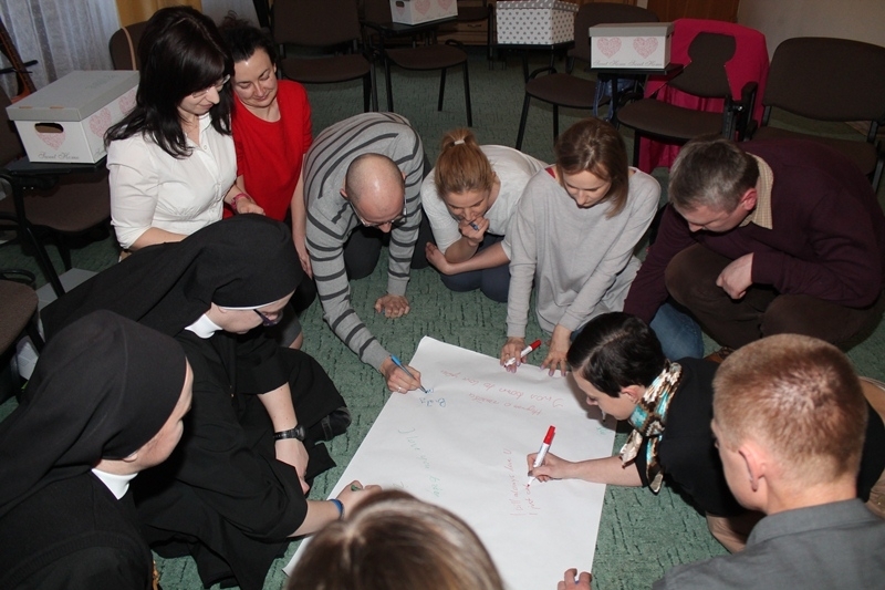 Całość naszego spotkania zakończyliśmy Eucharystią i wspólną kolacją wraz z dziećmi, które na czas konferencji i warsztatów miały zapewnioną opiekę przez nauczyciela przedszkola. Podczas Eucharystii dziękowaliśmy Bogu za wszystkie dary, którymi nas obdarował ale też nie zabrakło prośby do Boga by nas wspierał w obdarowywaniu się Miłością.