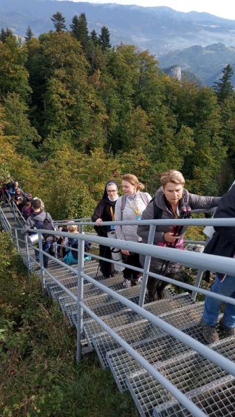 „Nasze pielgrzymowanie rozpoczęliśmy w Starym Sączu gdzie po modlitwie przy relikwiach św. Kingi i uroczystym błogosławieństwie wśród wielu braci i sióstr z całej Polski wyruszyłyśmy z s. M. Wincentą Niziołek w drogę. Przemierzając pielgrzymi szlak zatrzymywaliśmy się w miejscach związanych z św. Kingą gdzie towarzyszący nam kapłani sprawowali każdego dnia Eucharystię, można było również skorzystać z sakramentu pokuty czy porozmawiać. Czas pielgrzymowania wypełniony wspólną modlitwą i rozmowami wśród piękna przyrody mijał szybko. Podziwiając piękno Pienin nie sposób było nie wielbić Boga za dzieło stworzenia. Spotkania z siostrą i bratem pielgrzymem – świadectwa, rozmowy o życiu, o miłości Boga i zaufaniu Jemu, pozwalały na własną refleksję i przemyślenia. Po powrocie do starosądeckiego klasztoru została odprawiona Msza Św. i rozesłanie. Czas pielgrzymowania mimo wysiłku dawał wiele radości wypływającej ze wspólnoty otwartej na Boga i człowieka. Gesty okazywanej pomocy, zainteresowania, dzielenia się Słowem i tym co dźwigało się w plecaku otwierało nas na miłość Boga, który zawsze jest blisko i troszczy się o każdego posługując się ludzkimi sercami i rękoma.”