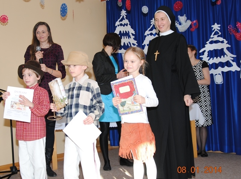 Wszystkie dzieci występujące w konkursie otrzymały pamiątkowe dyplomy oraz drobne prezenty w postaci pięknego kalendarza dla dzieci na nowy 2014 rok oraz słodyczy. Laureaci poszczególnych kategorii otrzymali z rąk jurorek piękne trofea oraz książki odpowiednie do wieku wykonawców. Dla nauczycieli przygotowane zostały specjalnie zaprojektowane na tę okazję podziękowania.