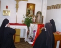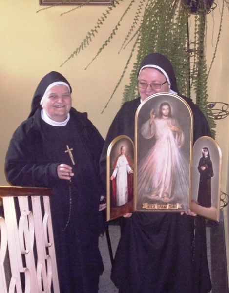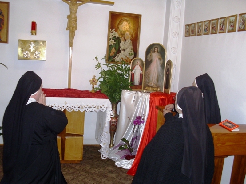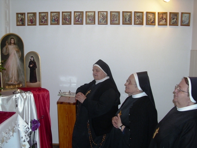 Siostry jako pierwsza wspólnota przyjęły Tryptyk. Po Mszy św. wieczornej, ksiądz proboszcz Kazimierz Grela przekazał Siostrom i przedstawicielom rodzin znaki Bożego Miłosierdzia. Siostry z radością przyniosły do domu Tryptyk i umieściły w kaplicy a następnie nastąpiło powitanie znaku obecności Bożego Miłosierdzia. Siostry w ciągu dnia i nocy trwały na modlitwie wspólnej i indywidualnej wypraszając miłosierdzie dla siebie, Zgromadzenia, bliskich i świata całego. Na modlitewne spotkanie z Jezusem Miłosiernym przychodziły również członkinie Modlitewnej Grupy Św. Józefa. W sobotę po południu Ks. Zbigniew Skrzyp włączając się w modlitewne czuwanie przy Jezusie Miłosiernym celebrował Msze świętą dziękując za wszelkie łaski i prosząc o dar Bożego Miłosierdzia dla Zgromadzenia Sióstr Św. Józefa, rodzin i całego świata. Wieczorem w sobotę Siostry pożegnały Tryptyk i przekazały sąsiadom.