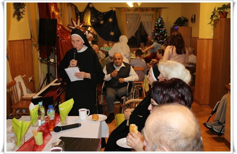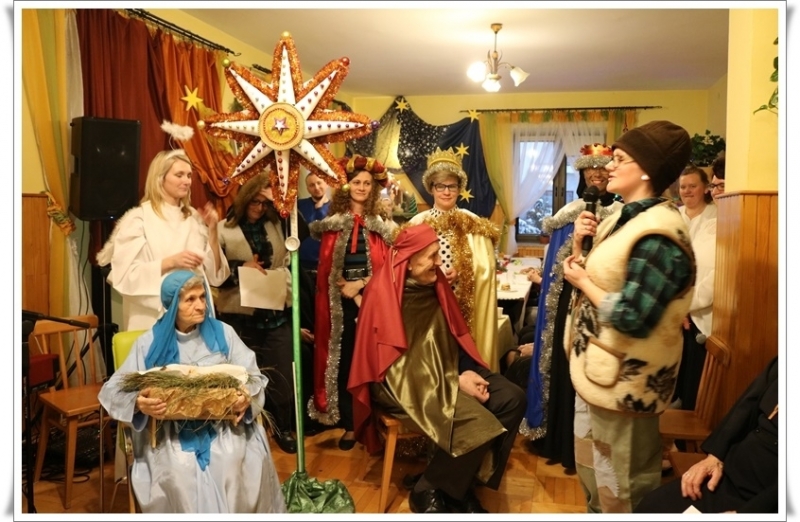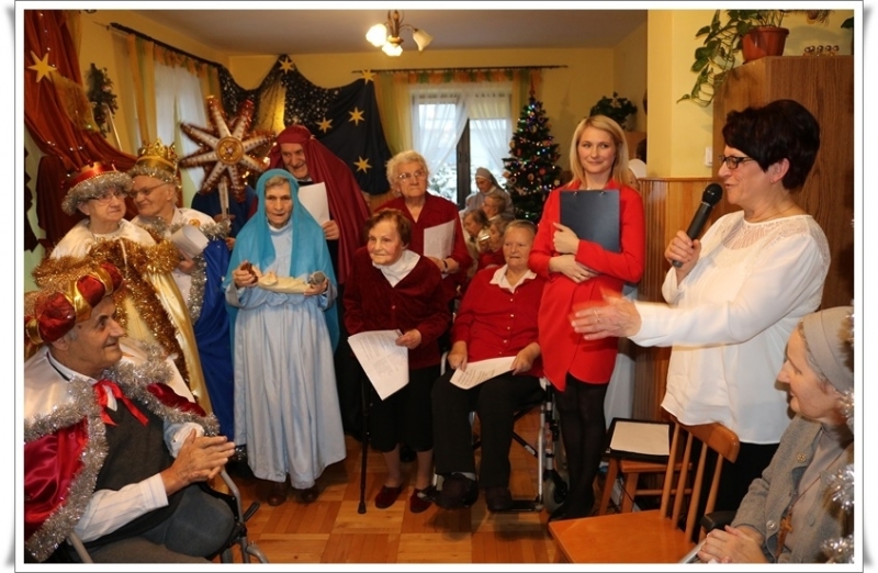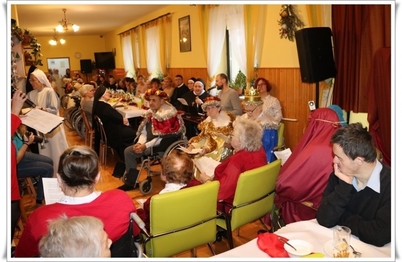 W czasie kolędowego spotkania z programem jasełkowym wystąpiły grupy: Mieszkańcy oraz pracownicy Domu. Nie zabrakło także rodzinnego kolędowania, pastorałek i kolęd w wykonaniu sióstr józefitek. Chór męski, powołany spośród uczestników, zdobył wielkie uznanie publiczności za kolędy Bracia, patrzcie jeno czy też Oj Maluśki, Maluśki.
